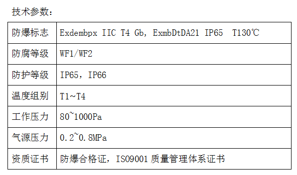 1.采用不銹鋼或者鋼板,機(jī)械強(qiáng)度高,氣密性好,通入保護(hù)性氣體作為介質(zhì)形成正壓腔內(nèi)的微正壓,隔離外部的可燃性氣體粉塵。
